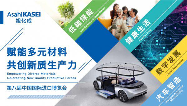 旭化成株式会社(以下简称 " 旭化成 ")将于 2025 年 11 月 5 日(周三)~10 日(周一)参加在上海举办的第八届中国国际进口博览会 8th CIIE(以下简称 " 进博会 ")。此次是旭化成第四次参展进博会。以“赋能多元材料,共创新质生产力”为主题,聚焦“汽车智造”、“数字发展”、“健康生活”、“低碳绿能”4 大领域,展出数十款产品及解决方案。详情如下。